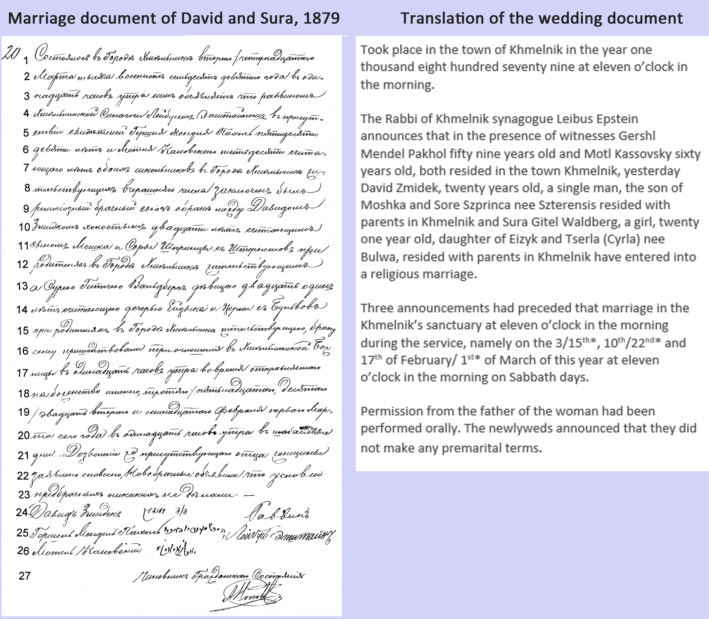 Married: 1879 to Sura Gitel Waldberg. See Marriage certificate