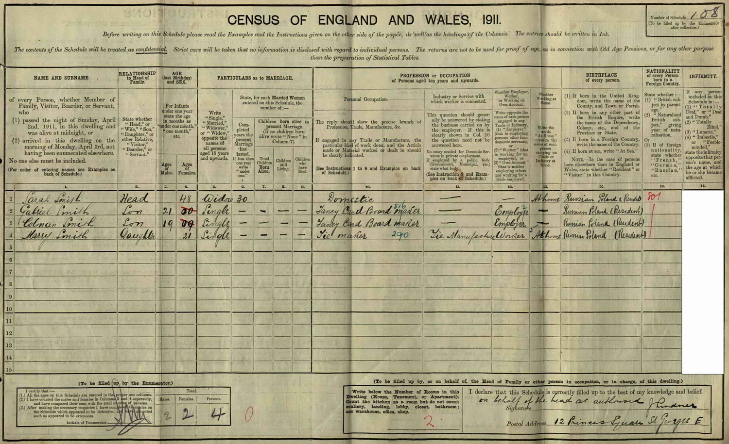 Mirla - Mary - was Gabriel's twin sister. She and Hyman Gerlis had six children: Toby, Leon, Albert, Lily, Diana and Celia.
