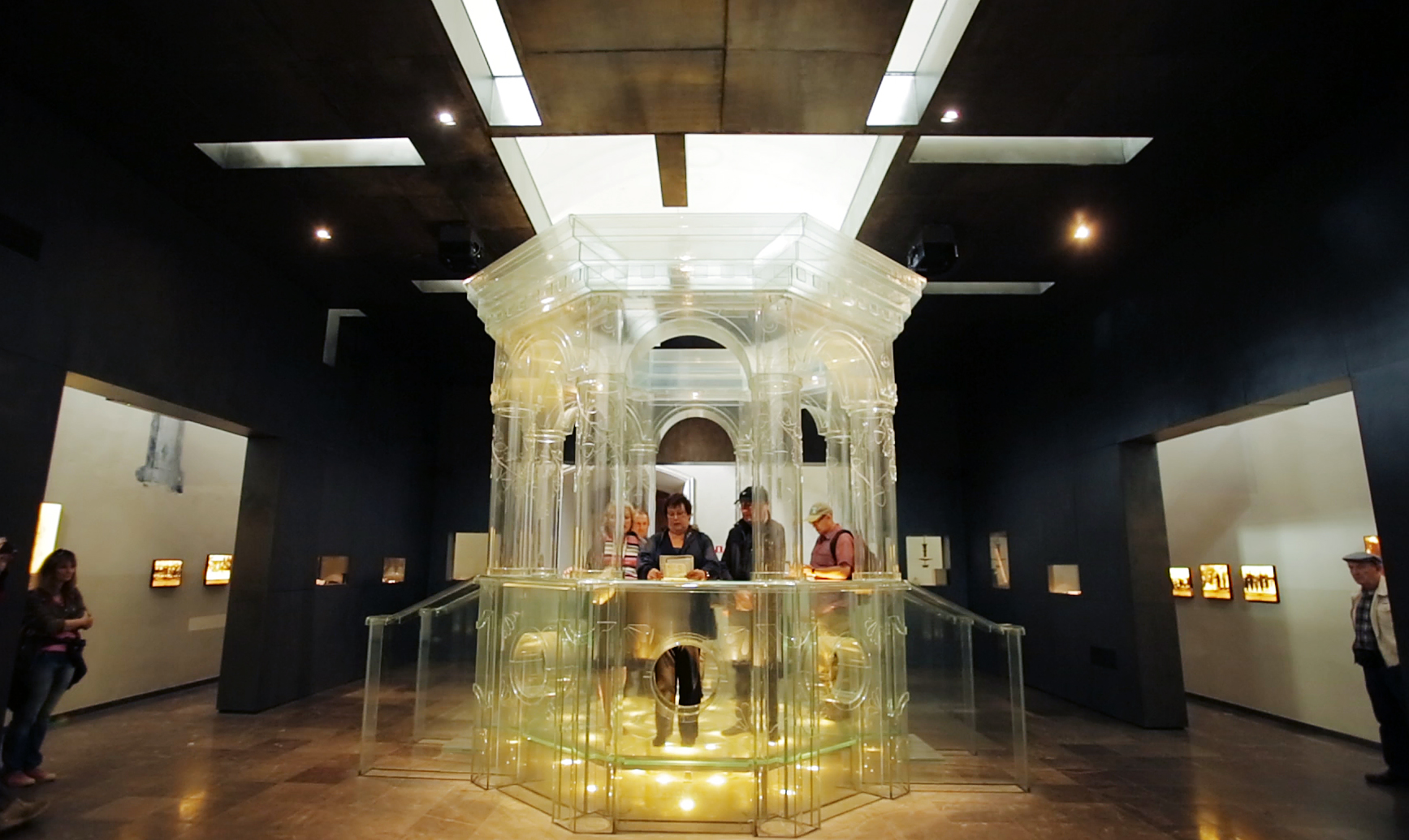 The synagogue in Chmielnik has been restored and is now another stop on the tourist trail. The synagogue features a remarkable glass bimah, installed as part of the restoration. We said our second Kaddish on the bimah.