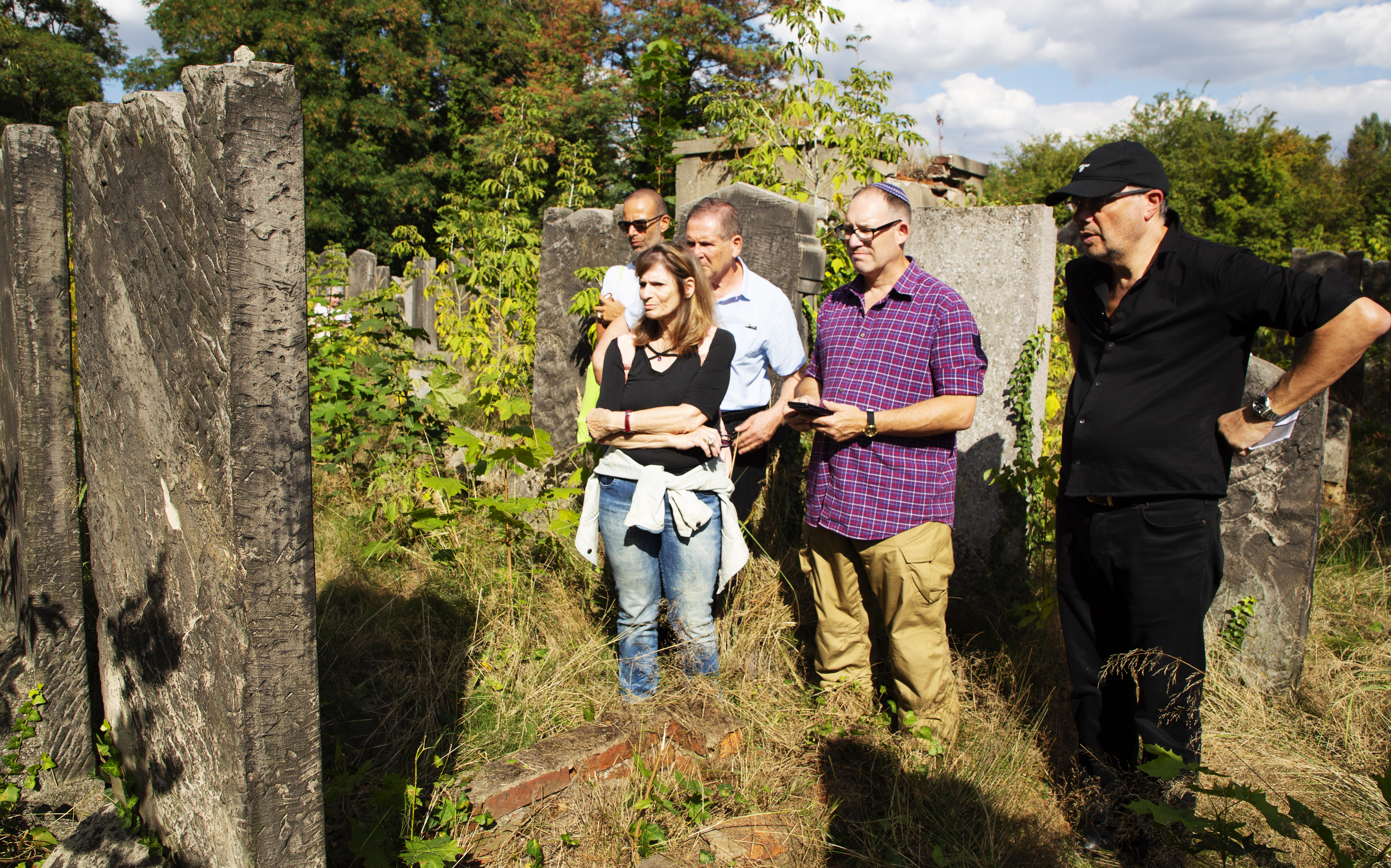 Later, we visited the Jewish cemetery. The cemetery is vast and overgrown with greenery. We searched for the graves of Szymon and Hencla Zmidek and eventually located the grave of Szymon Zmidek. Another connection to our ancestral past was established.